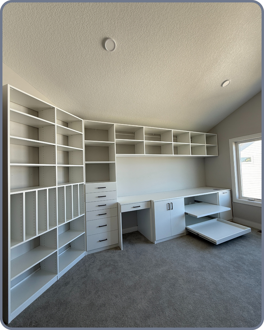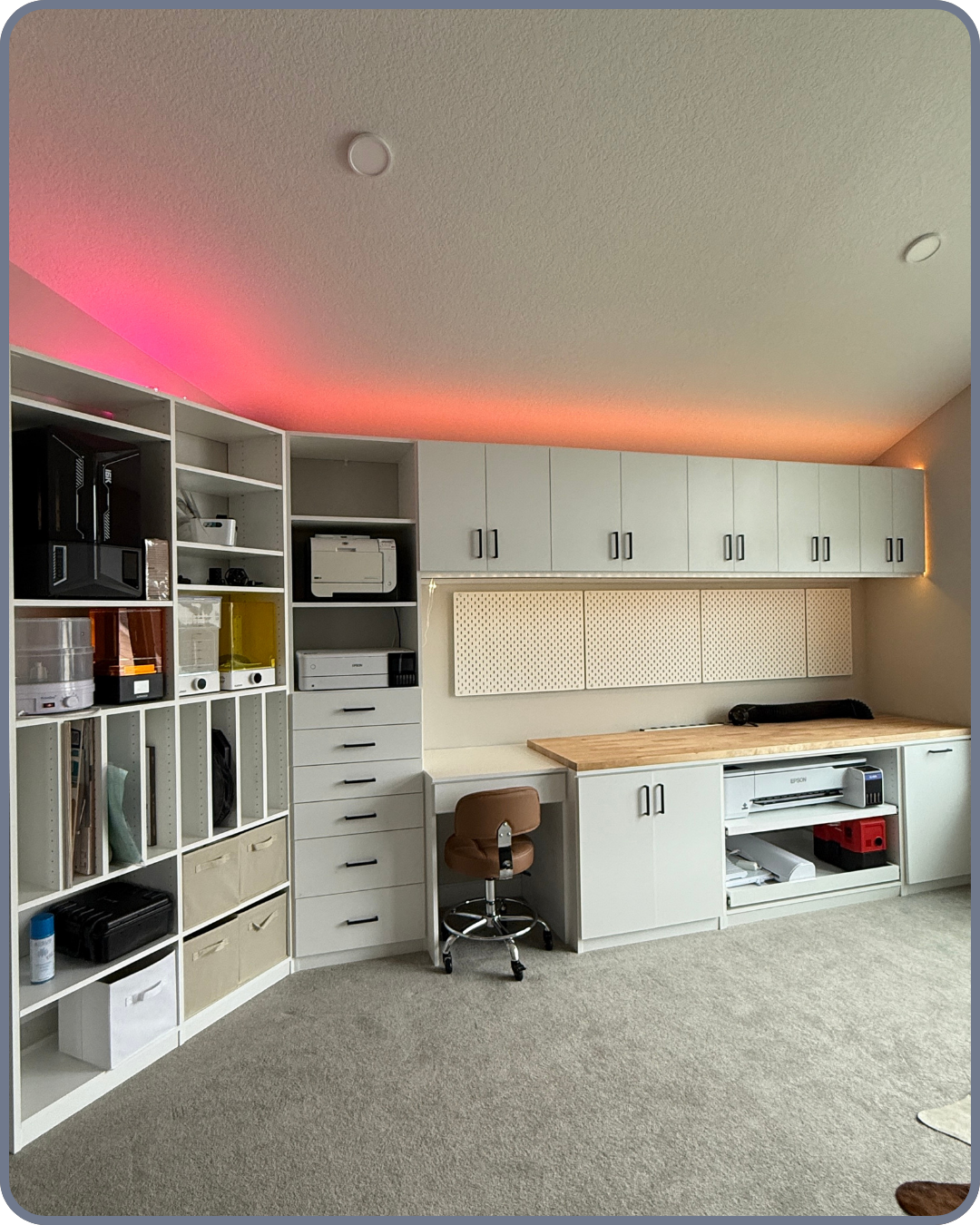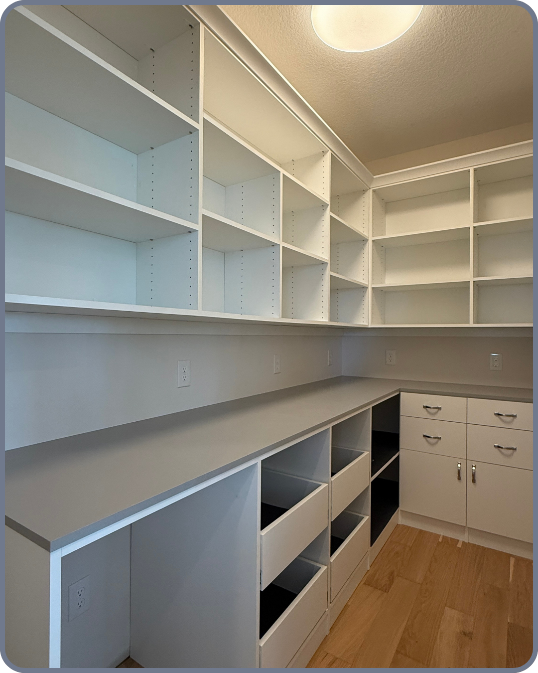 Create a space that inspires with our’ custom Hobby and Craft Room designs. Whether you're into sewing, painting, scrapbooking, or DIY projects, we’ll help you transform any room into a creative haven. With smart storage solutions, spacious work surfaces, and personalized organization, your tools and materials will always be right where you need them. It’s more than just a room—it’s where your passions come to life.