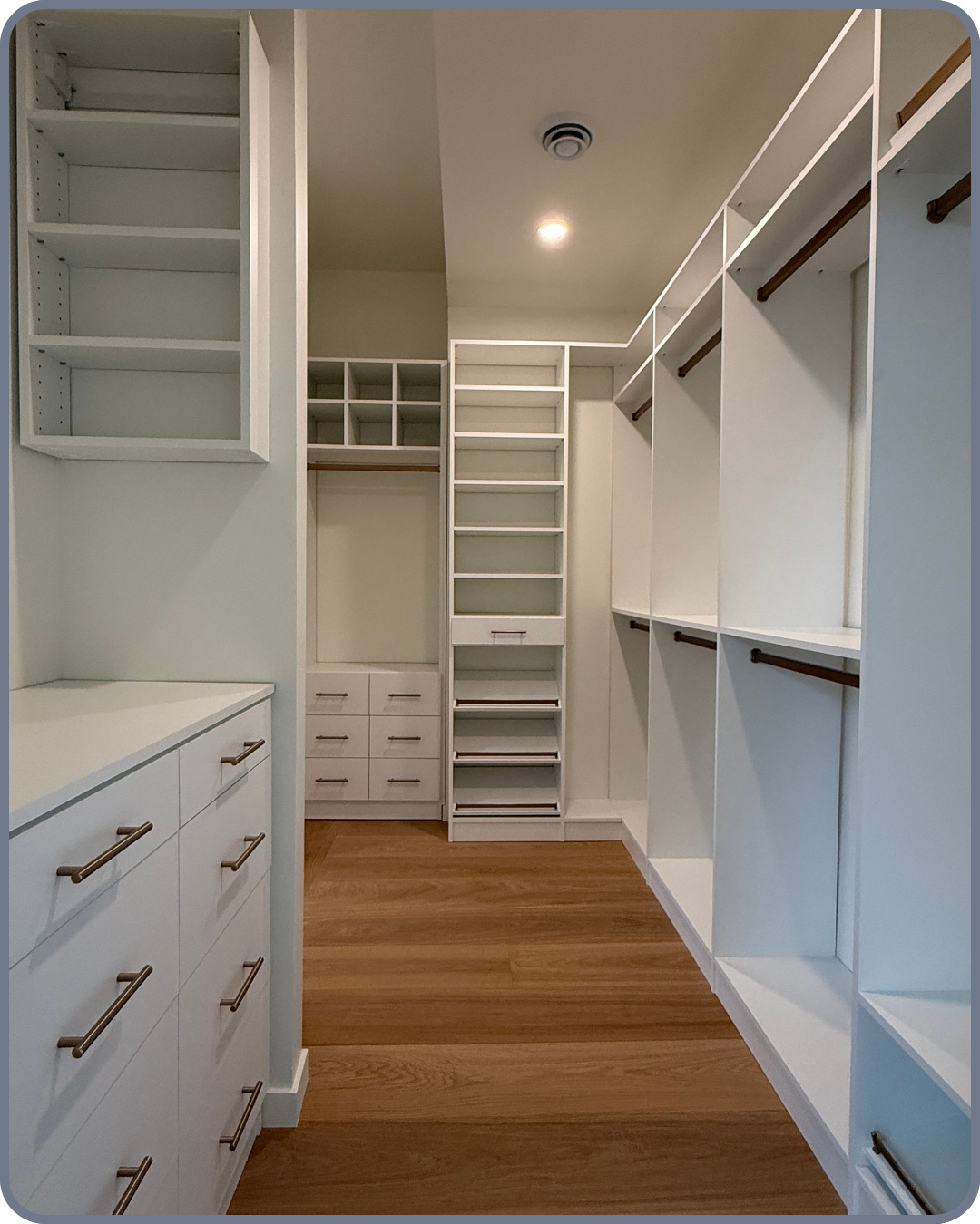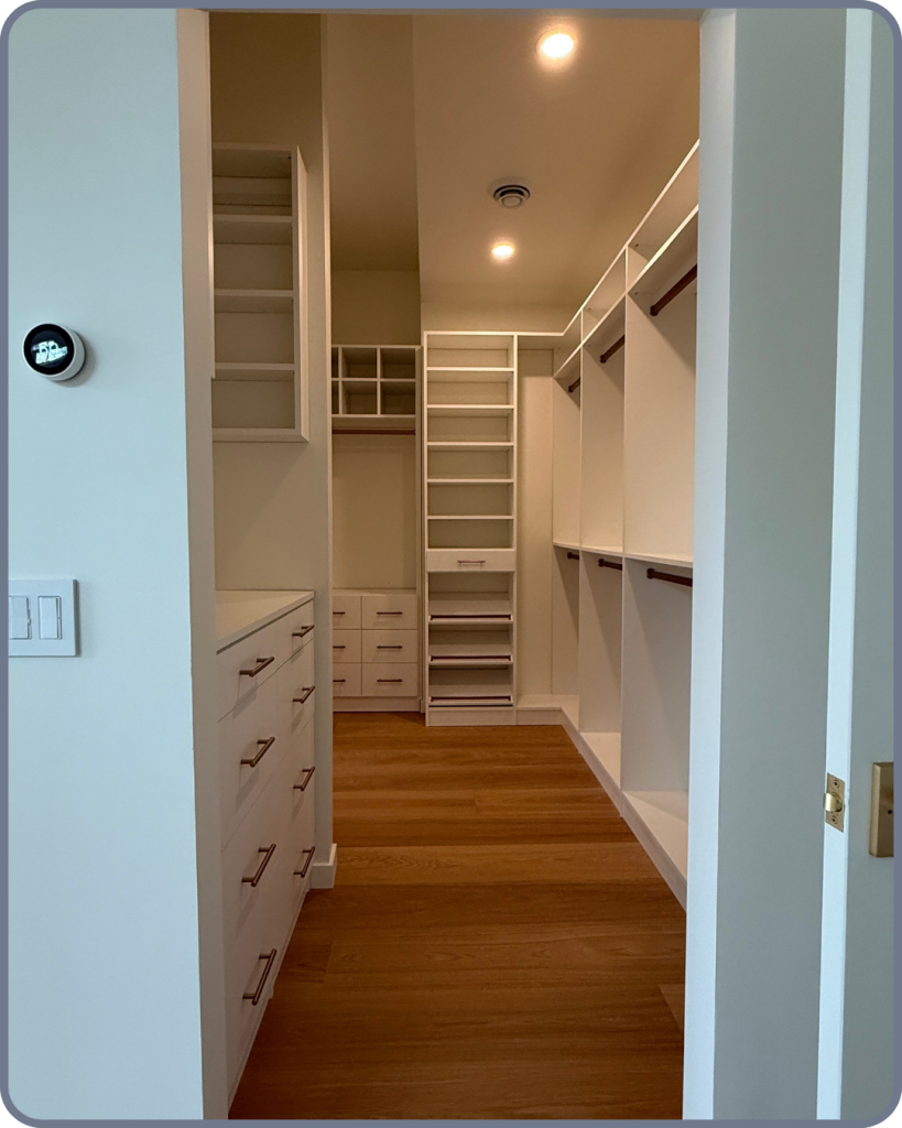 Seamlessly connect style and function with our custom Walk-Through Closet designs. Ideal for spaces between bedrooms and bathrooms, these pass-through layouts offer the convenience of easy access with the luxury of a fully personalized closet experience. With smart storage, custom organization, and high-end finishes, our walk-through closets make transitions feel effortless—while keeping everything beautifully in place. It's the perfect blend of flow and function.